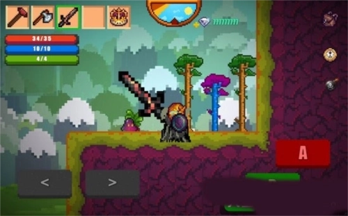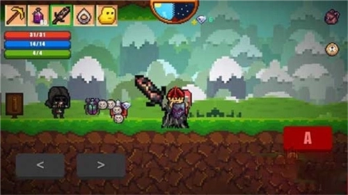 玩家能够操控角色进行左右移动、跳跃以及攻击动作。角色拥有血量、魔法和能量三个数值槽,其中血量与魔法的作用比较直观,而能量槽主要用于限制角色连续跳跃的次数。此外,该角色没有饥饿度设定。