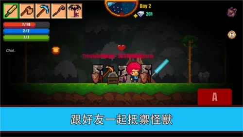 2、在像素生存游戏2里,你可以收集木材和各类矿石,用来建造形形色色的物品;还能和其他玩家在线互动,一同开启生存挑战。