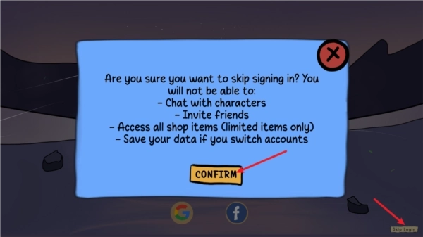1、进入游戏后无需登录,直接点击右下角的login,再点击跳过就可以了。
