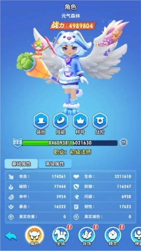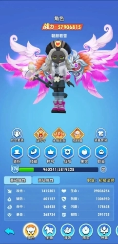 角色主要呈现出自身的战力、等级、属性等方面的信息。在这些内容里,属性又细分为基础属性和极品属性: