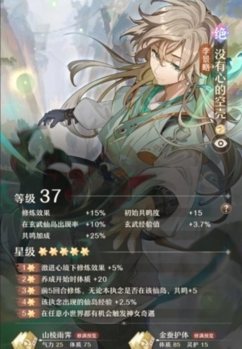 虽然是免费送的执念卡,但主属性给得挺不错,附带的两本功法也都挺实用。特别是二阶的时候还能提升生命值上限,性价比相当高了。