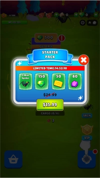 离线收益与养成玩法:即便玩家不在线,蜘蛛仍会依照预设程序持续捕猎。玩家再次登录游戏时,能够获取离线期间积攒的各类资源,像经验值、金币以及特殊道具都包含在内。借助这些资源,玩家可以进一步强化蜘蛛的各项能力,购买新装备或道具,从而提升蜘蛛的生存和战斗水平。比如,用金币购置强化外壳,能增强蜘蛛的防御能力;使用特殊道具,则可以解锁隐藏的技能树分支,让蜘蛛拥有更强劲的进化路径。