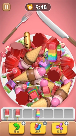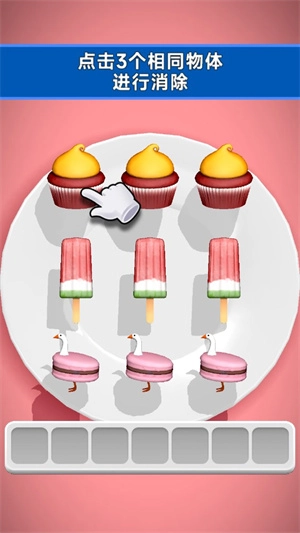 这是一款轻松有趣的休闲小游戏,核心玩法是经典的三连消除。玩家只需在游戏盘面中找出相同的物品并点击,即可完成消除操作。游戏里的元素都很可爱,像甜筒、果冻、棒棒糖、马卡龙等,这些萌萌的设计让整个游戏过程既和谐又充满乐趣。