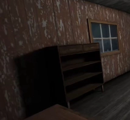 这是出生房,靠近床时点击右上角能躲到床下,衣柜里也可以藏身,床头柜左边抽屉里有三行红字:Leavethishouse(离开这个房子),右边抽屉通常不会刷新物品(反正我没遇到过)。房间里只有花瓶和摆花瓶的桌子能被推倒,花瓶可以拿起来扔到地上。到了Day2【第二天】,出生房的门会被锁住,所以得扔花瓶或者推倒桌子吸引奶奶过来,之后躲进床下或衣柜等奶奶离开。