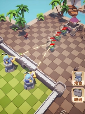 3、在小岛争夺战中,你需要建造炮塔、主动出击并击败敌人,以此获取资源和拓展更多领地。