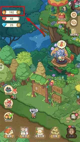 1、进入《动物之星》游戏后,首先要收集大量橡子——它相当于游戏里的货币,后续能帮助玩家建造更多设施。