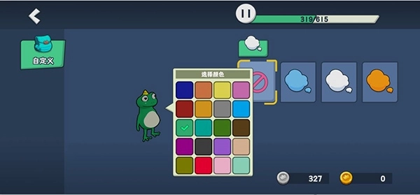 4、点击这只青蛙,会弹出装扮界面,你能在里面更换装扮和颜色;