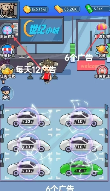 3、电力是升级汽车与配件的关键材料,可通过观看广告来获取。