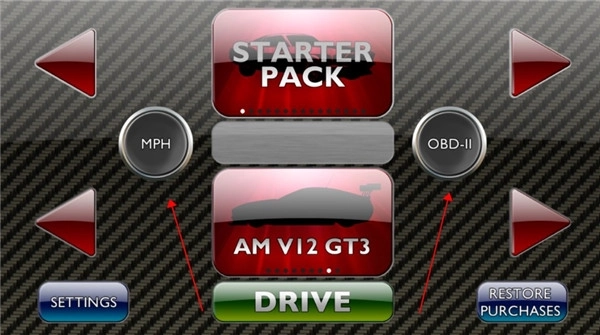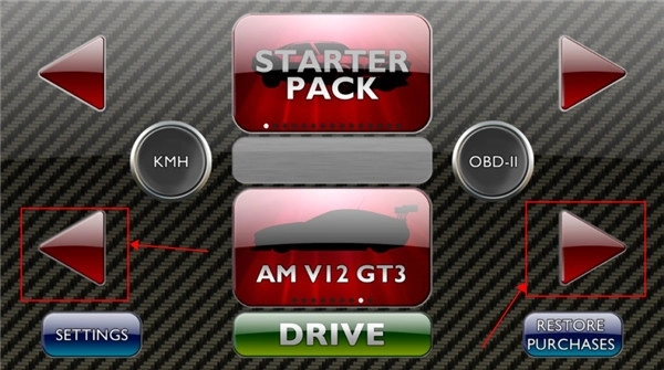 1、进入游戏后,通过屏幕两侧的按钮切换车辆选择。