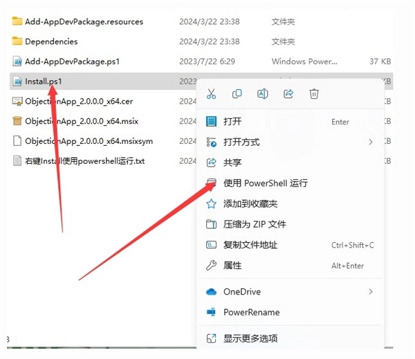 安装时需开启Windows开发人员模式,也可通过压缩包目录里的Install脚本进行安装(右键点击后选择用PowerShell运行该脚本)