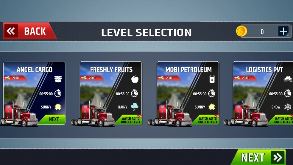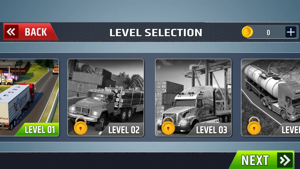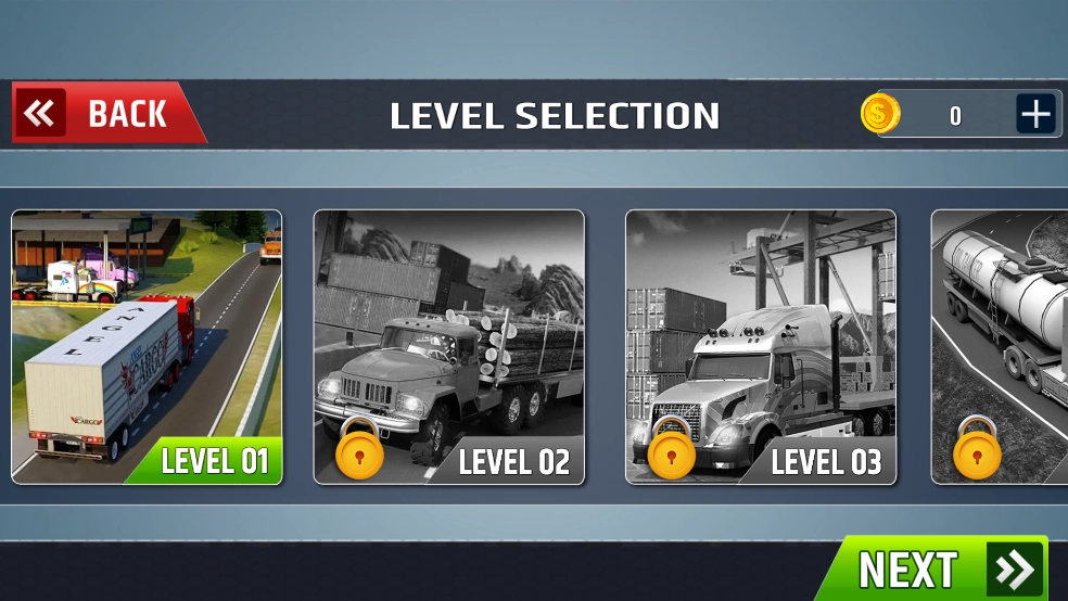 起初只有基础款车辆,通过运输赚取金币就能解锁并购买性能更出色的车型。
