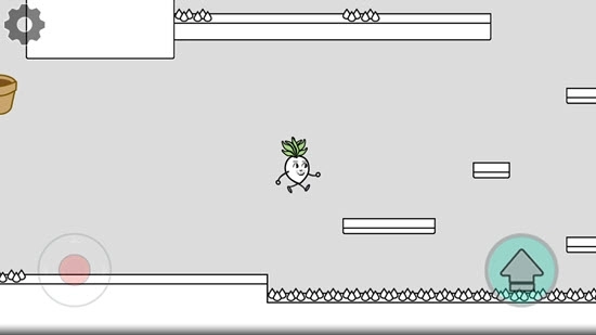 在游戏里,玩家要操控主角——一颗萝卜,越过途中的各种障碍,抵达花盆所在的地方,然后把它种进盆中。这款游戏目前设有10个关卡和两种游戏模式,普通模式通关后就能解锁挑战模式。