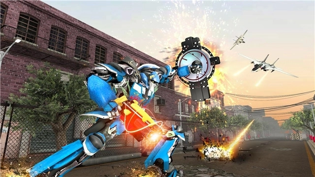 1、玩家可以操控强大的变形机器人在城市里自由行动