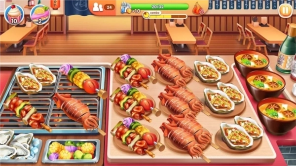 2、快餐店、日本料理店、烧烤店,还有海量特色厨房都等着你来解锁体验。只需轻轻操作,就能做出美味佳肴,更有数百个关卡等你来挑战。