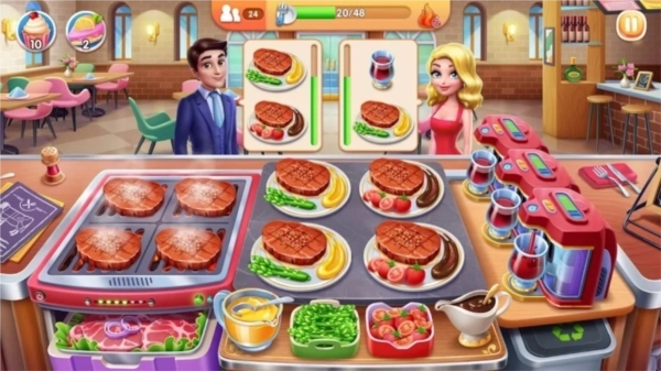 在游戏中,除了体验美食烹饪的乐趣,餐厅管理也是重要环节——通过装修、清洁和维护设备,能让餐厅保持井井有条的状态。游戏操作十分简单,玩家只需用手指轻点即可完成所有操作;经营过程中,每位顾客的需求各不相同,根据客人偏好的口感搭配食材并进行烹饪,正是作为厨师的最大乐趣所在。