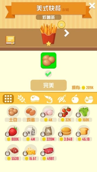 首先解锁属于自己的第一间厨房,接着依据这间厨房的专业功能去钻研适配的餐饮食谱。比如最初解锁的是专门制作炸薯条的厨房,炸薯条作为美式快餐的代表之一,所需的核心食材是土豆。等收集到土豆后,就可以开展“研究”环节,借助对土豆的加工处理,最终制作出成品炸薯条。