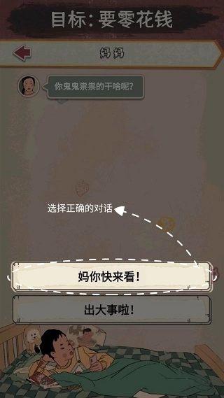 点击“开始游戏”按钮进入游戏,接着挑选想要挑战的关卡(比如第一关),之后根据问题给出的选项,完成正确的对话即可。