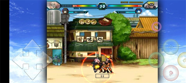 5、借助虚拟摇杆操控角色移动,搭配技能按键释放招式,通过灵活走位规避风险,抓住合适的时机发起进攻,最终击败对面的敌方忍者。