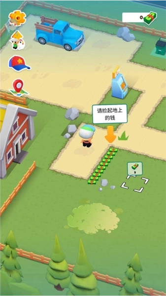 2、进入游戏后,按照系统给出的引导提示操作,我们可以通过滑动屏幕来控制角色的移动,把地上的钱拾取起来。
