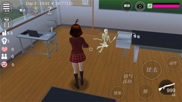 7、晚上19:00时前往学校2楼,右侧的理科室里能看到一具骷髅架子,我们要将它消灭掉