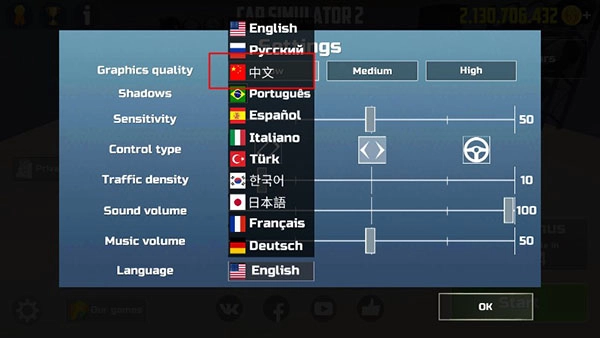 1、先把汽车模拟器安装好,启动游戏后,点击左下角的齿轮形状图标,进入游戏设置界面;