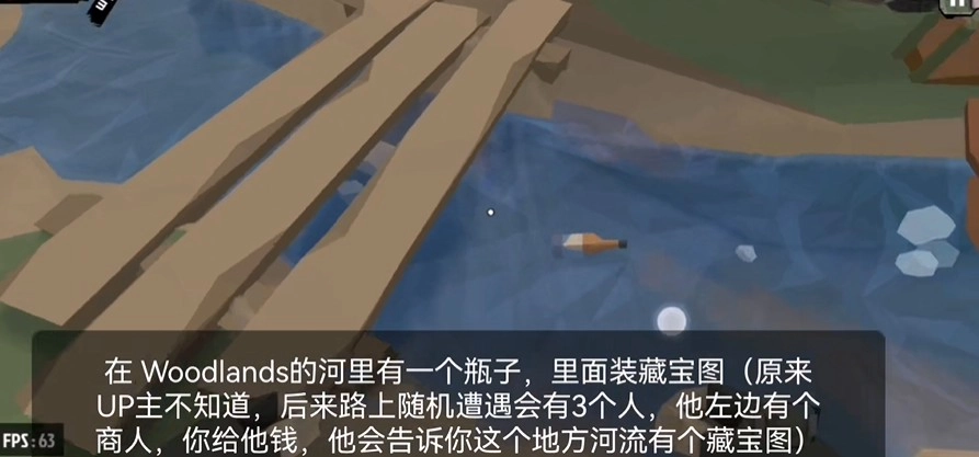 4、在Woodlands区域的河流里能找到一个瓶子,瓶内装有一张藏宝图(之后会碰到三人组,左侧的商贩能用金钱来交换藏宝图的位置信息)