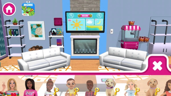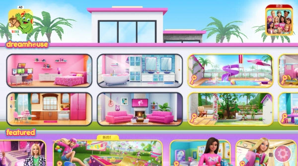 游戏内的内容十分丰富,有海量房间可供玩家探索,玩家还能自由进行房间的家装设计,打造出自己心中独一无二的梦幻芭比小屋。