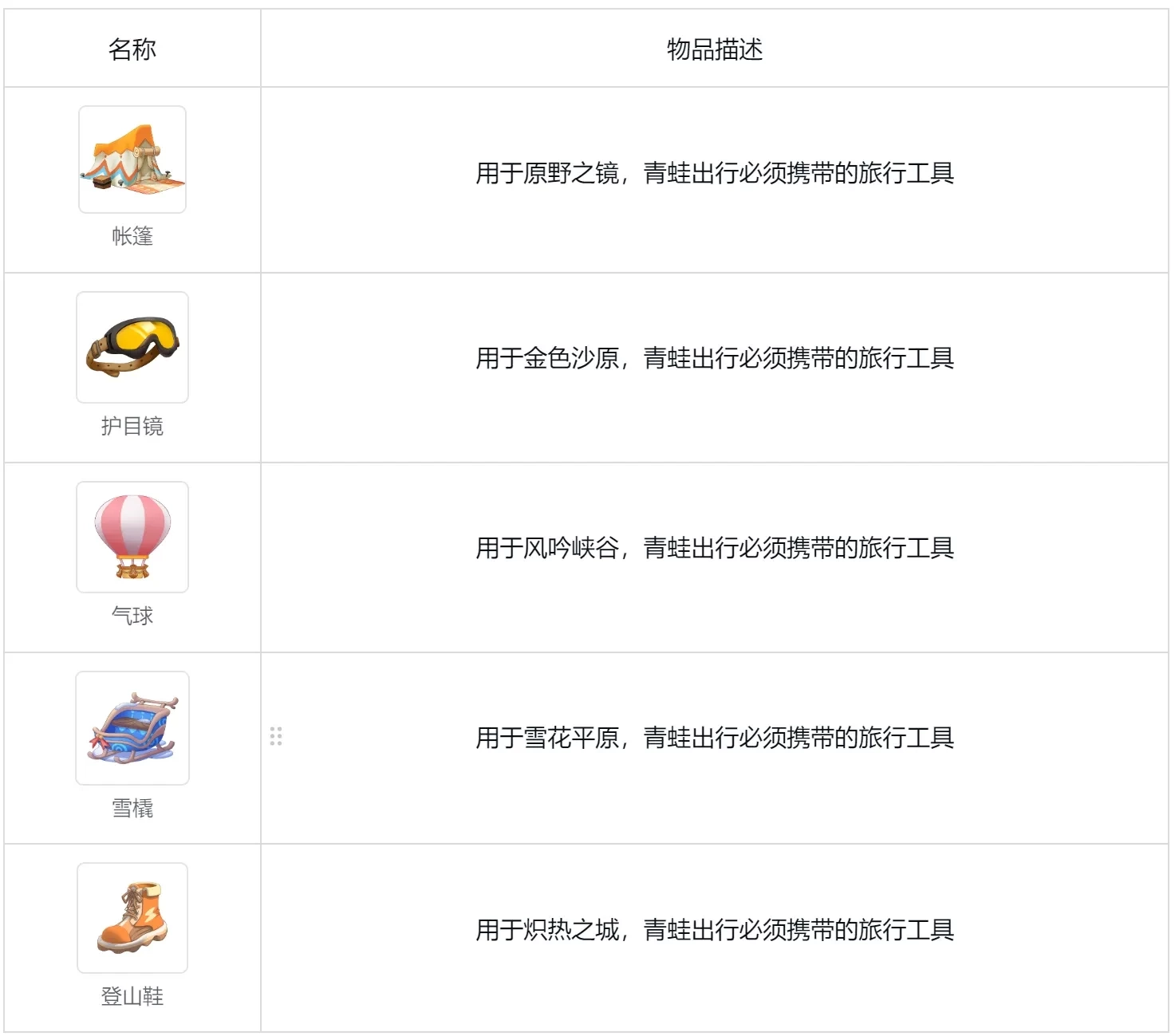 商店:可通过三叶草、种子、工具碎片兑换对应的道具(如寻宝卡、线索卡)、物品(如化肥)、食品(如三明治、华夫饼、蛋黄酥)以及旅行工具(如帐篷、护目镜、气球、雪橇)等。