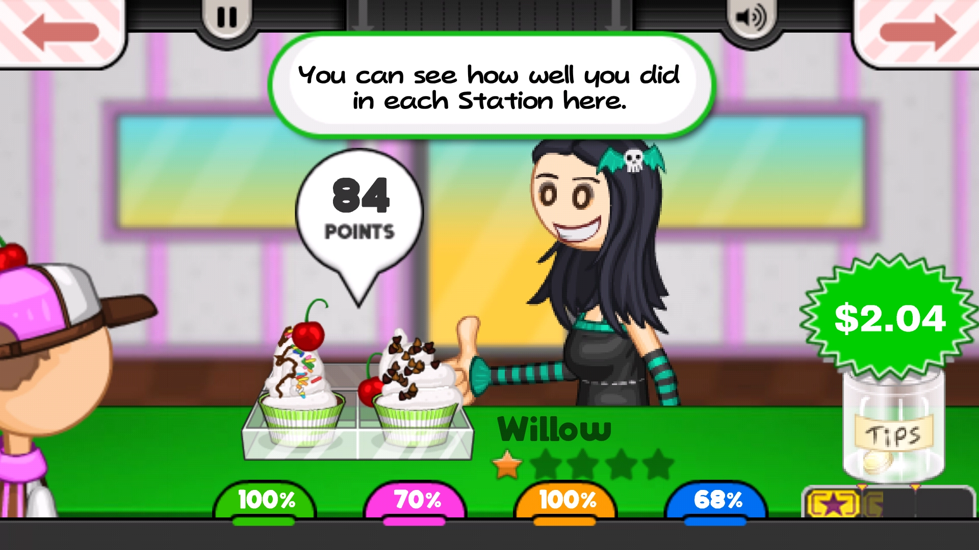 10、制作完成后将冰淇淋递给顾客,我们得到了84分的评分以及2.04美元的收入