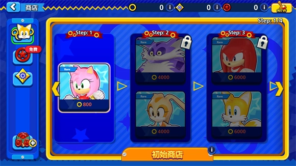 索尼克IP的角色需在商店里用金环解锁,只有解锁完前一阶段的所有角色,才能解锁下一阶段,而最后一个阶段可解锁索尼克。