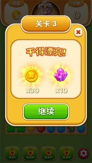 当所有目标都被消除后即可通关,通关后系统会依据剩余的步数发放奖励。