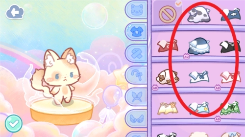 6.在右侧选择各种不同的饰品来装扮可爱的猫咪