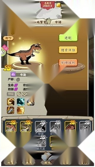 11、最后是市场挂机玩法,具体操作是把你计划繁育的恐龙挂到市场上,然后等待其他玩家主动来找你进行配对繁育。