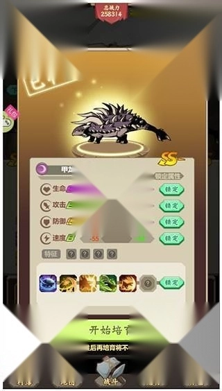 4、找到你要培养的恐龙,点击它,就会呈现出如下画面。