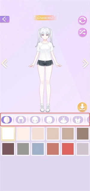 2、更换造型:二次元装扮游戏,服装风格多样,款式丰富,众多发型,表情,肤色供你选择。
