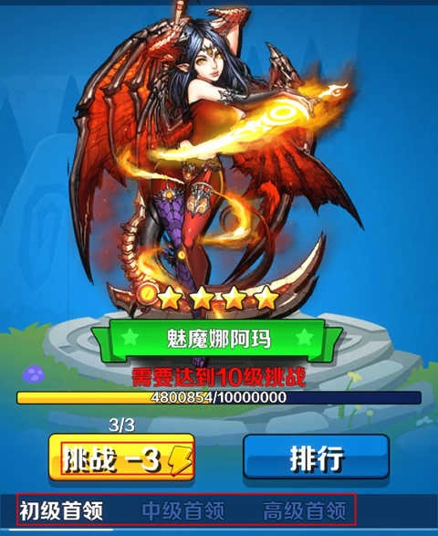 5、另外,游戏里还设有初级、中级、高级三类首领boss,当玩家等级分别达到10级、15级、20级时就能发起挑战。参与挑战后,玩家可通过对boss造成伤害来参与排名,伤害数值越高,最终的排名就越靠前。