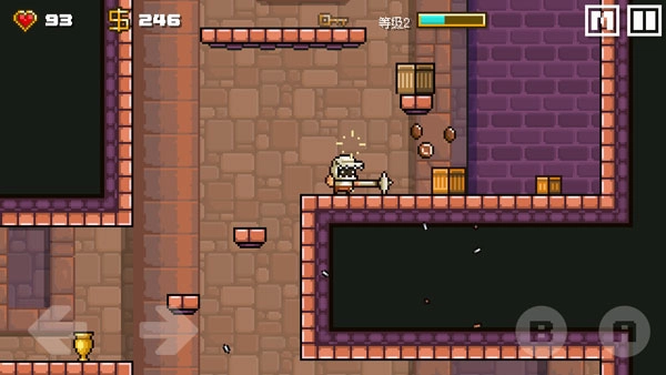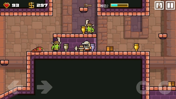 游戏操作非常容易掌握,屏幕左下角方向键控制角色左右移动,右下角B键用于攻击,A键则是跳跃功能,长按可触发下跳技能。小心走位,避免被怪物击中。