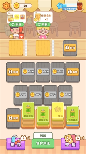 3.随着奶茶屋规模的扩大,玩家需要招募更多店员,并通过统一培训让他们为顾客提供个性化服务。