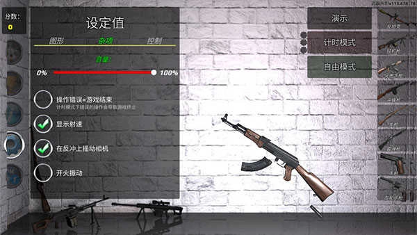 1、进入游戏后,玩家可借助左侧的控制面板来完成枪支的相关设定。