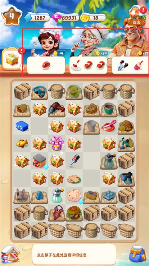 2、在界面里查看任务要求的物品,把正确物品放进格子后就可以领取金币奖励。