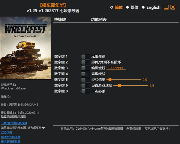 数字键 3 - 编辑金钱