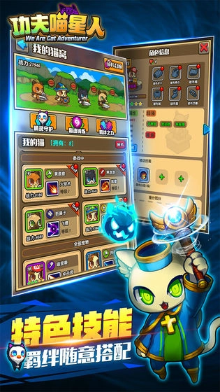 《功夫喵星人》是一款改编自《口袋妖怪》的2D回合制放置战斗游戏,玩家在游戏里将化身为宝可梦训练师。