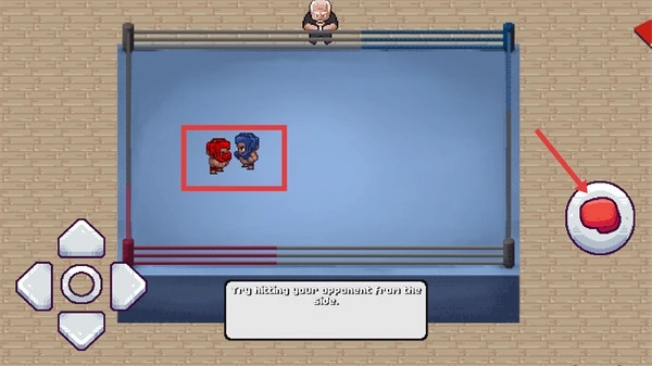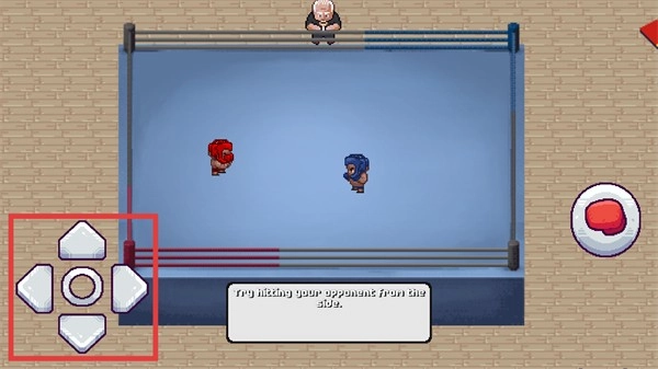 3、在教程战斗界面,通过左下角的方向键控制拳击角色移动,向对手的方向靠近。