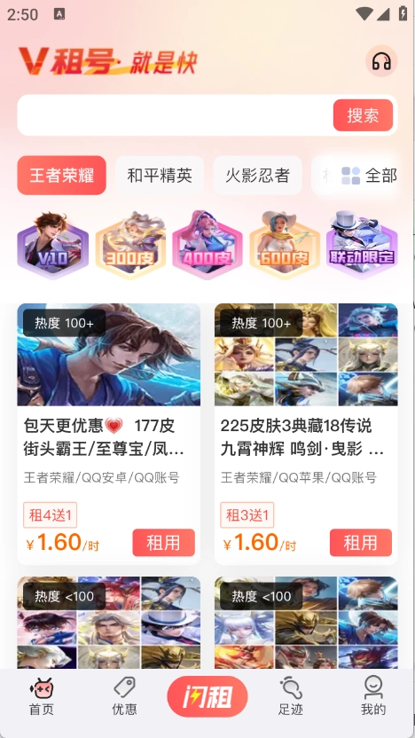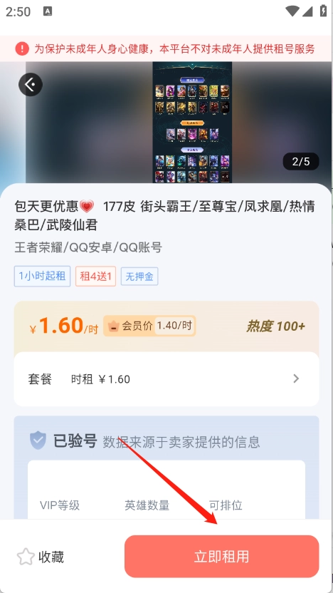 点开需要的游戏账号点击“立即租用”。