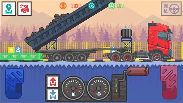 4.掌握卸货技巧:游戏里的每一关都是崎岖难行的山路。玩家得熟练运用各个档位来控制速度,同时把控好卡车的平衡与稳定状态,这样才能顺利完成卸货任务。