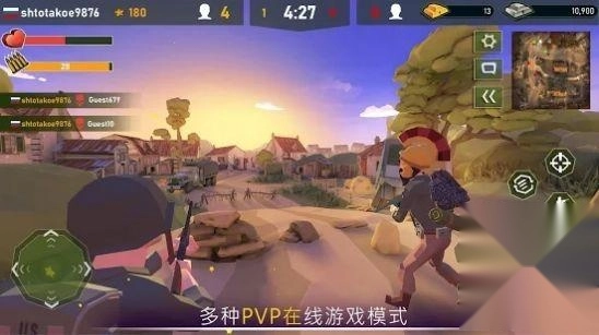 3、这款游戏运用像素风格的画面,为玩家构建出一个庞大的像素世界,你将和其他玩家一同在此体验像素世界里的射击玩法。