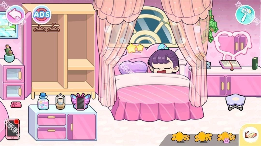 7、画面里的所有事物都支持互动,例如将角色放置在床上,她便会进入睡眠状态。