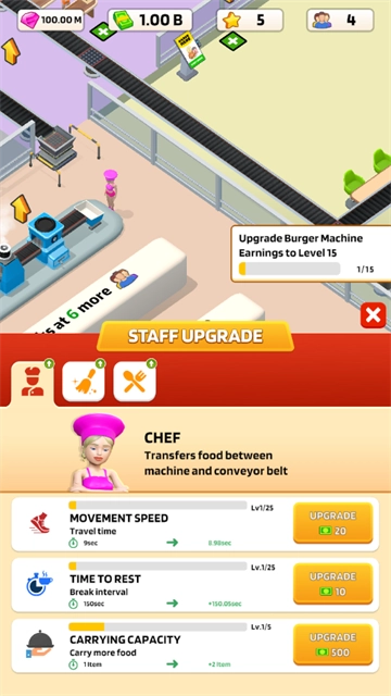 解锁新内容:玩家能够借助赚取硬币来解锁新的食谱、升级设备,从而提升餐厅的收入。