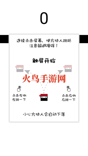 在这个游戏里,玩家需要点击屏幕的左半区域,小人就会向左上方跳跃;点击屏幕的右半区域,小人则会向右上方跳跃。要是撞到障碍物,游戏就失败了。
