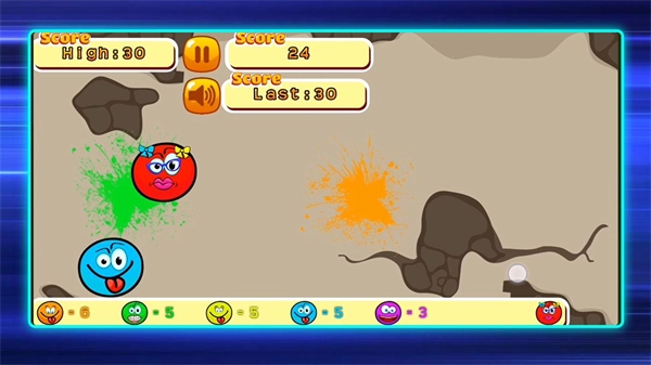 你可以随时在左上角查看当前点击的分数,以及不同颜色表情各自的数量。